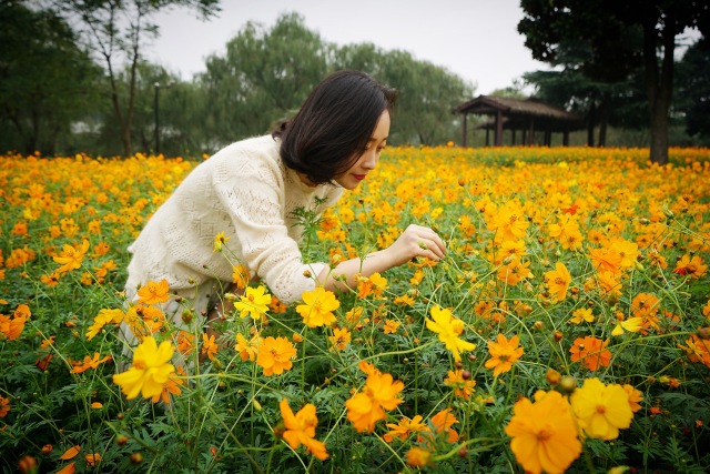 秋季的花卉园,虽少了郁金香的艳丽,然遍地的硫华菊,一片接一片的金黄,让整个秋在花卉园尽情的绽放!