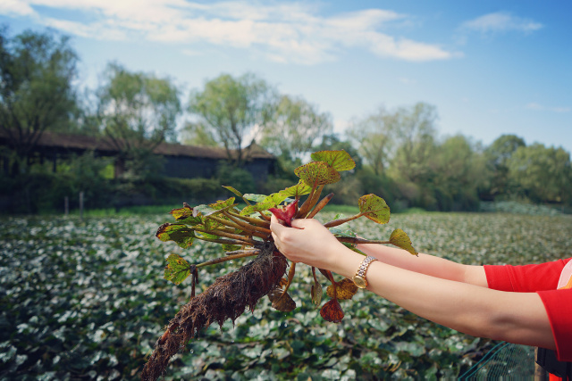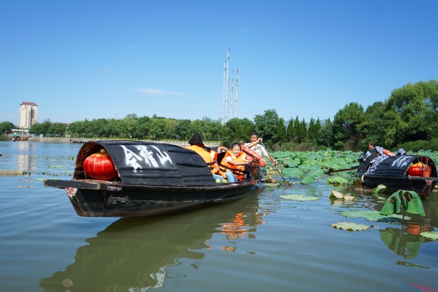 游客朋友们可乘着乌篷船,边品尝新鲜红菱,边观看采菱姑娘的现场表演。
