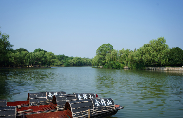 船儿驶出荷花池,映入眼帘的事一幅绿意盎然的水墨画,清新而淡雅,绵柔而悠长。