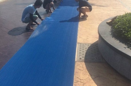 为防止游客在乐园内滑倒受伤,运营部同事在高温天气里仍旧顶着烈日,将乐园主要道路地面的防滑毯铺设完成。时间紧迫,要完善的方面还有许多,运营同事加班加点、毫无怨言,只为梦幻水世界能够顺利运营,为旅投公司创造乐园品牌打响第一枪!