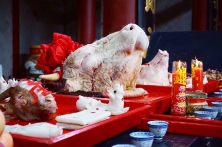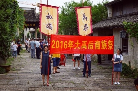 农历六月初六,是古代治水英雄,华夏人文始祖—大禹诞辰纪念日。 来自姒族守陵村村民和各地的大禹后裔代表齐聚大禹陵,隆重举行2016大禹诞辰民间祭祀活动。上午9时18分,在鞭炮声中,百余人着正装,抬着牛、羊、猪头,五谷杂粮,水果等祭品,从守陵村出发,手举姒族祭禹旗帜,浩浩荡荡前往大禹陵禹庙大殿祭祀。9 时50分,祭祀活动正式开始。全体肃立、鸣礼炮、敬献祭品、敬献花篮、绍兴市姒族研究会会长、大禹第143代孙姒茂利诵读祭文,后裔族人姒姓、夏姓、鲍姓、禹姓、娄姓代表先后向大禹像鞠躬、敬香,代表全体大禹后裔向祖先行礼,以祈求来年风调雨顺,五谷丰登。现年86岁的鲍姓代表激动地说:“每年六月初六,我们都要自发组织祭祀大禹活动,整个场面庄严隆重。大禹是我们的保护神,老百姓纪念他,一来表达我们对大禹的崇敬和缅怀之情,二来祈求来年风调雨顺。”