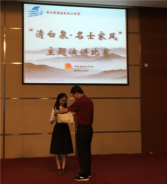 为大力弘扬中华传统家庭美德,彰显绍兴“名士之乡”文化底蕴,由绍兴团市委组织的 “清白泉·名士家风”主题演讲比赛决赛今日在市委党校举行。来自全市各市直单位的14名选手参加决赛,我馆选手周洁、胡静雯分别获得一等奖、三等奖的好成绩。