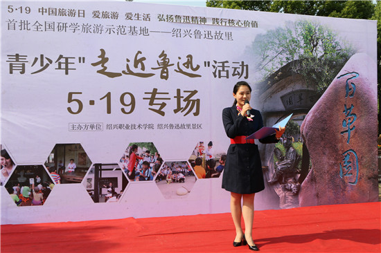 5月19日,鲁迅故里景区联合绍兴职业技术学院在景区东广场举办青少年“走近鲁迅”活动5·19专场文艺汇演。景区员工和学校师生以舞蹈、朗诵、现场书法、舞台情景剧等丰富多彩的形式迎接第五个中国旅游日的到来,受到游客好评。(文/杨晔城 摄影/周洁)