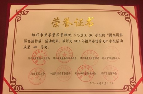 提质增效 再获佳绩 ——兰亭景区QC小组活动成果荣获2016年绍兴市优秀QC小组活动成果一等奖