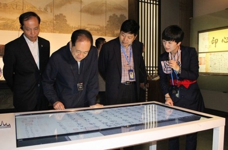 30日下午,韩启德及夫人考察了兰亭书法博物馆,对景区在今年书法节期间推出的“徐渭感映大展”给予高度肯定,并与随行书法家探讨交流书法作品,气氛融洽。临行前,首长希望景区工作人员进一步打响兰亭书法品牌,更好地弘扬书法文化。