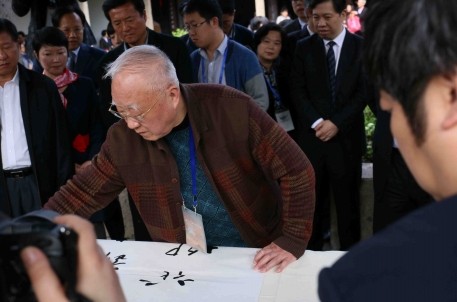 2016年4月9日上午9点,伴随着清脆的《兰亭集序》童声朗诵,第三十二届兰亭书法节开幕式在兰亭景区王右军祠举行。省人大常委会副主任毛光烈宣布开幕,北京故宫博物院常务副院长王亚民,中国书协顾问、省书协名誉主席朱关田,中国书协副主席包俊宜、宋华平、陈振濂,中国书协分党组副书记、秘书长郑晓华,中国书协分党组成员、副秘书长潘文海,中国文联书法艺术中心主任刘恒,省文联党组书记、书记处常务书记田宇原,省书协主席鲍贤伦,市领导彭佳学、俞志宏、谭志桂、陈长兴、尹永杰等出席开幕式。开幕式由市委常委、宣传部长何加顺主持。