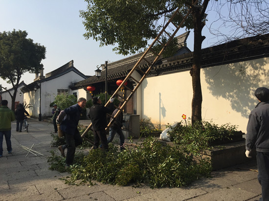 鲁迅故里街区两侧树木较为高大,如遇暴雪积压,容易折断伤及路人,景区工作人员对较长的侧枝进行修剪,确保行人通行安全。另外,沈园、鲁迅故里景区内,地面多为青石板,恶劣寒冷天气下,容易结冰危及行人。景区未“雪”绸缪,准备了扫把、铁锹、麻袋等设备,并组织安排积雪清扫人员,扎实做好道路清雪防滑“战备”工作,确保届时人员反应迅速、应急工作到位、道路畅通无阻,景区安全有序。