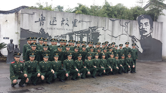 110,省消防总队培训基地组织近百名学员到鲁迅故里景区参观学习,鲁迅故里浓郁的人文特色给消防官兵们留下深刻的印象。图为消防官兵在鲁迅故里景墙前合影。(杨晔城)