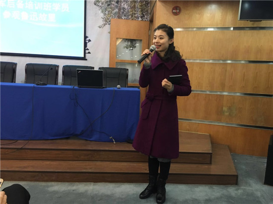 11月27日上午,湖州市金牌导游领军后备人才培训班学员一行四十余人来到鲁迅故里交流学习。鲁迅故里优秀讲解员代表沈苇、高丽娜、王琳、戴晶颖参加交流会。