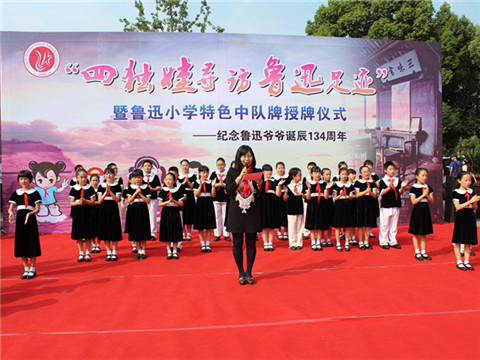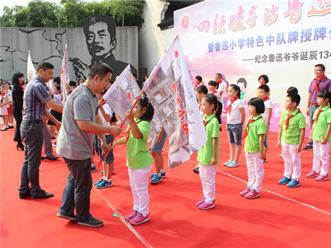 今天是鲁迅诞辰134周年纪念日。昨天下午,由鲁迅小学教育集团主办,鲁迅纪念馆协办的“四独娃”寻访鲁迅足迹出征暨鲁迅小学特色中队牌授牌仪式在鲁迅故里东广场举行。鲁小学子们以健美操表演、诗朗诵、大合唱、现场书画、特色中队牌授牌仪式和“四独娃”寻访鲁迅足迹授旗仪式等丰富多彩的活动内容展示“独立、独特、独创、独秀”的鲁小风采,弘扬鲁迅“立人”精神。(杨晔城 周洁)