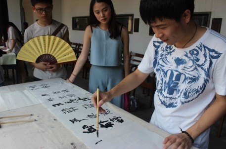 近日,由中华文化联谊会、浙江省人民政府主办,浙江省文化厅、台湾“中国青年大陆研究文教基金会”承办的“情系青春——两岸青年吴越行”活动一行80余位大学生来到书法圣地——兰亭参与书法体验活动。