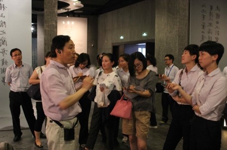 兰亭书法博物馆自2015年4月21日开馆以来,以其独特的展示手法、新颖的设计理念和清晰的文化脉络,为广大观众展示了目前全国最大专题性书法博物馆的独特魅力和深度内涵。为加深景区员工特别是讲解员对书法博物馆展陈内容的正确解读,促进讲解员业务水平的进一步提升,从而更好地为广大观众提供专业、优质的讲解服务,近日,景区邀请博物馆陈列设计单位:杭州正野博展艺术有限公司徐正野教授就博物馆设计理念和陈列内容为景区员工现场授课。