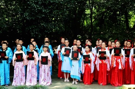2015年端午佳节,兰亭景区为传承中国传统文化,弘扬古典国学魅力,特邀北海小学教育集团“越韵”吟诵会的孩子们,带来了一场中国古代经典文学诗作的吟诵盛会。