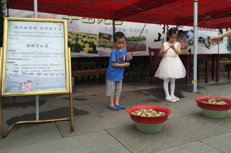 2015年端午节,会稽山景区祭禹广场活动可谓精彩缤纷,除举办端午主打特色活动——“礼舞怀古人,敬香祈福康”祭舞表演外,还推出了贴图腾、钓粽子比赛、微信端午答题等游客参与性极强的活动,受到现场游客朋友们的一致好评。