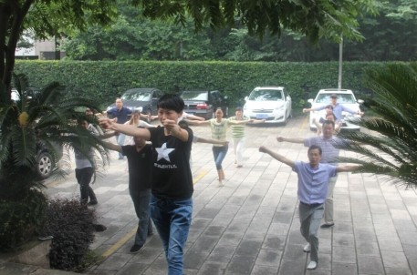 6月23日上午,第九套广播体操培训班在市名城办正式开班。在兰亭景区朱萍同事的耐心教导下,广大名城办的员工已经熟练的掌握了第九套广播体操。在朱老师的引领示范下,大家伴随着广播体操口令,认真地学习着每一个伸手、弯腰、扩胸、踢腿,体侧等一系列动作。
