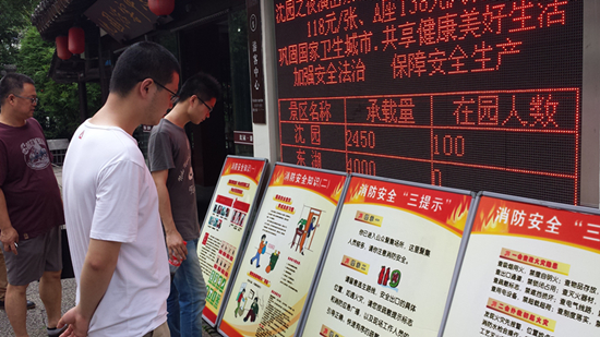 6月是安全生产月。沈园景区在游客中心门前以展板图文并茂的形式向游客和过往行人宣传消防安全常识,既教大家学会正确使用常见的消防工具,又介绍一些遇到火情的逃生自救方法,吸引游客驻足观看。(杨晔城)