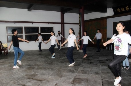 “第九套广播体操,现在开始……伸展运动,预备,起,一二三四,五六七八……”6月16日下午,第九套广播体操的旋律开始在名人故居贺秘监祠内唱响,管理处积极组织工作人员前来参加工间操的学习。工间操是一种很好的积极性休息方法,不仅能够锻炼身体,放松大脑,还能给枯燥的办公室生活增添乐趣,建议坚持每天抽出10分钟做工间操,以促进血液循环和胃肠蠕动,锻炼出健康的身体、愉快的心态,摆脱亚健康。第一批参加工间操培训的人员共有10名,之后这十名学员将深入各个景点,在本景点范围内推广普及此套工间操。
