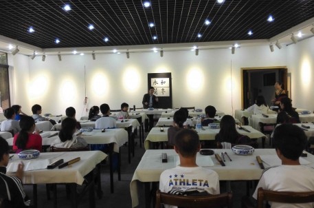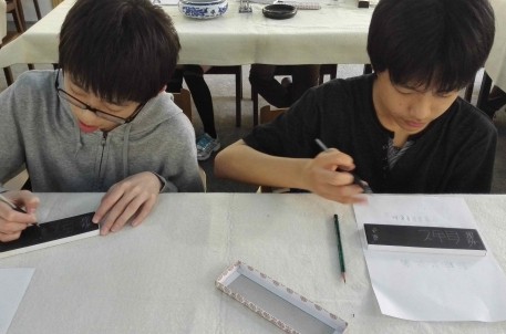 5月9日下午,32位远道而来的日本小朋友来到书法圣地——兰亭景区参观游览,并在瓷砚馆二楼培训室内参与了书法理论和篆刻培训,熏染书法与篆刻艺术的独特魅力。