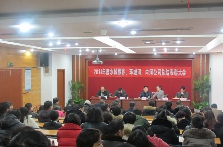 会议首先由公司总经理张永茂对2014年水城旅游、环城河、内河公司作了工作总结报告。张总指出,2014年是机遇与挑战的一年,也是成绩与困难并存的一年。回顾2014年,通过全体员工的共同努力,水上旅游产业不断发展,项目建设扎实推进,城市管理更趋专业,企业内部管理切实优化。据统计,水城公司主营业务收入达399.63万元,同比增长7.31%,实现利润54.92万元,同比增长32.08%;环城河公司实现经营性收入同去年基本持平。同时,张总还对今年实施的重点工作及党风廉政建设工作作了重要阐述。