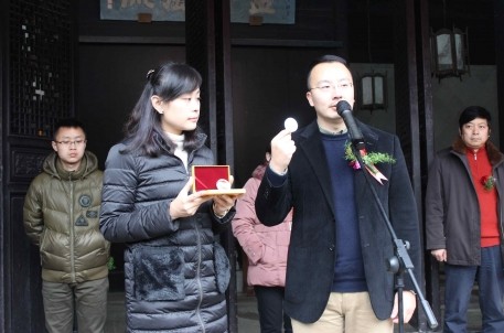 发布仪式上,兰亭景区副主任家喻革良首先致辞,介绍了景区特色旅游产品的开发现状及今后的开发设想。而后,省博钱币研究专家李小萍、浙大副教授王宏星分别作了发言,对该章的开发表示肯定,并表达了期许。杭州宝泉总经理单凛则向大家介绍了纪念章的设计理念和技术开发过程。最后,喻革良和单凛为机器揭幕。