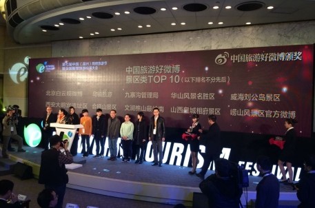 2014年12月20日,第七届中国(温州)网络旅游节暨全国智慧旅游应用大会在浙江温州隆重举行!本届网络旅游节以“智慧旅游 应用无限”为主题,由国家旅游局、中国互联网协会为指导单位;由浙江省旅游局、温州市人民政府共同主办;温州市旅游局、浙江省旅游信息中心共同协办。来自全国从事旅游信息化工作的政府领导、行业专家、业界精英、智慧旅游试点城市代表和多家权威主流媒体、旅游新媒体技术供应商等逾400余位嘉宾参与本次盛会。 大会开幕仪式由浙江省旅游局副局长许澎主持。温州市人民政府副市长胡纲高、浙江省旅游局党组书记王文娟、中国互联网协会副秘书长石现升分别致欢迎辞,预祝大会圆满成功。在开幕式上,各位领导与嘉宾代表大会组委会对获得2014年度中国旅游好微博、中国旅游好微信、浙江旅游好微博及浙江旅游好微信等四个奖项的获奖单位进行颁奖。会稽山景区官方微博荣获2014年度中国旅游好微博(景区类)。