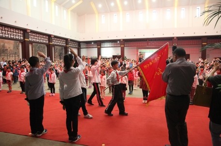 2014年10月11日下午,培新小学与绍兴博物馆共建德育教育实践基地挂牌仪式圆满落成,我馆宣教部主任谢依娜同志受聘培新小学校外德育辅导员。同时,培新小学“红领巾相约中国梦 核心价值观我践行”主题大队活动暨2014级新生入队仪式在我馆举行,180名一年级新生在博物馆光荣宣誓,成为少先队队员。