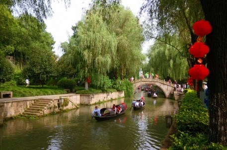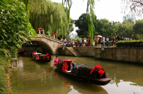 中秋小长假第一天,城市广场乌篷船码头,人头攒动。6艘装饰一新的乌篷船,整齐地停靠在码头。上午9时,锣鼓声响起,6位美船娘,载着新人及亲朋好友开始水上迎亲巡游。身着旗袍、打着油纸伞的水乡姑娘,走上了龙门桥,为游客们展现粉黛旗袍秀。水乡、乌篷、新人、佳丽,构成了一幅绝美的水乡风情画卷。摄影爱好者们,不停地按着快门,记录这美丽的瞬间。其中有位是来自中国旅游报的梅记者,他为了拍摄乌篷船水上婚礼,专程从杭州赶来。在接受绍兴记者采访时,他兴奋地说:“今天能够看到乌篷船婚礼秀,我真的很激动,我一定要把乌篷船的文化传播出去,让全世界的人民都知道,都到绍兴来感受乌篷船的风采。”