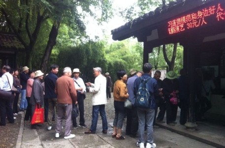 5月19日上午,兰亭景区入口处早早迎来了一批客人,他们说着地道的绍兴方言,手持二代居民身份证和刚换好的免费票有序的排队入园参观,这是自“绍兴人免费游绍兴”政策实施起景区迎接的第一批游客。