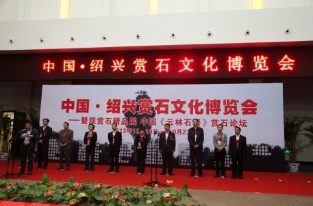 10月18日,中国•绍兴赏石文化博览会暨云林雅集•全国观赏石名家名品邀请展在绍兴博物馆书画二厅开展。此次展览由中国观赏石协会、浙江省观赏石协会、绍兴市文化产业促进会、绍兴市文学艺术家联合会主办,绍兴市观赏石协会承办。国土资源部原副部长、中国观赏石协会会长寿嘉华,原航空学院政委、将军、中石协高级顾问张训彩,省国土资源厅副厅级巡视员、省观赏石协会会长张志勋等领导出席开幕式并致词。