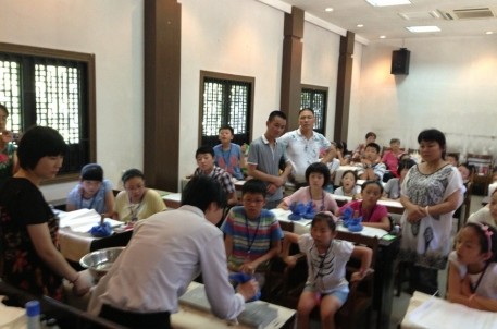 立秋之始,天热仍旧酷热难耐,书法圣地——兰亭景区学生书法夏令营活动也如火如荼的进行着。8日,湖州市少年宫师生一行56人来兰亭景区进行为期一天的短期书法夏令营活动。