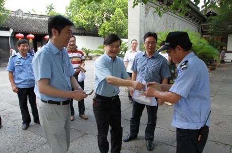 7月17日下午,集团公司董事长沈安龙一行来到鲁迅故里·沈园景区慰问一线工作人员。在景区门口,沈安龙董事长为在岗的员工送上水和毛巾,还关切地询问检票员、讲解员的工作情况,感谢他们在高温酷暑中坚守岗位,,嘱咐大家注意防暑降温,下班后好好休息。