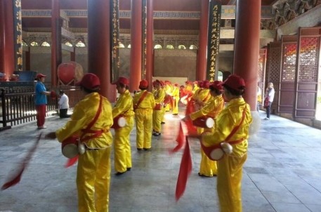 六月初五,一个看似普通但却是绍兴民间众多善男信女十分重视的吉日。相传这是我们的治水英雄——大禹的生日,一大早会稽山景区就迎来了虔诚的香客们,他们是纷纷来到这里为大禹过生日的。但今年给大禹过生日的形式与往年有所不同,早上八点多一点的时候,一支身穿黄色绸缎服装的腰鼓队就浩浩荡荡的也来到了会稽山景区,上午九点,他们在大禹庙前整齐又富有节奏的为我们的治水英雄敲起鼓,跳起舞。之后,香客们都会到禹庙大殿前纪念这位造福万民的圣人,焚香祭拜、祈愿风调雨顺、国泰民安。还有部分香客从百步禁阶就开始叩拜祈愿,虔诚之心让人感动。