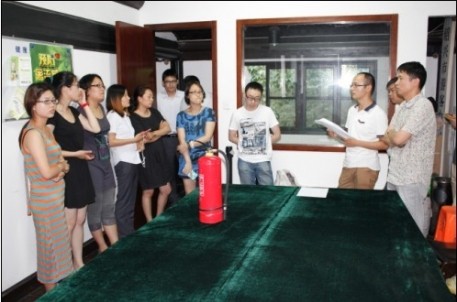 下午15时,中心全体在岗员工在中心会议室集中。首先,安全员对本次演习议程进行了介绍,并为新老员工讲解和演示了灭火器的使用要领以及消防设备在办公区域的分布。简单培训后,公司书记范永明,宣布进入演习阶段,全体员工紧张有序地通过应急通道,来到游客中心大厅,并根据演练议程,顺利完成了对电子商务前台接待应急预案的演练。