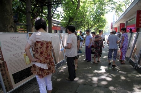 博物馆将《兰亭的故事》展板送进青藤社区,并分发了宣传资料,