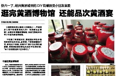 5月24日的钱江晚报旅游专题版面,对绍兴黄酒城景区作了整版的专题报道,全文共计2200余字,7幅照片,对黄酒城的概况、酒史文化、特色活动、地下酒窖、黄酒宴等作了全面报道和推介。