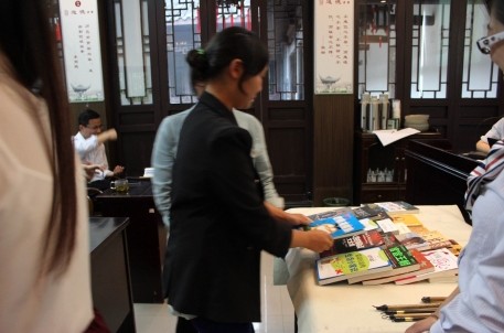 本次道德讲堂紧紧团绕“向善”的主题,从自我反省、唱歌曲、学模范、诵经典、发善心、送吉祥、向“德”字鞠躬、做善事等8个环节进行了宣讲。讲堂上,与会人员认真进行了自我反省,高声齐唱《爱的奉献》,听宣讲员讲述田思嘉等道德模范的典型事例,诵读了管仲的经典名言等。在向“德”字鞠躬环节,景区副主任、书法家喻革良现场挥毫写下了一个大大的“德”字,进行了别具特色的向“德”字行礼的环节。最后,与会人员为兰亭镇小的贫困学生捐献了书籍,表达了一份小小的爱心。