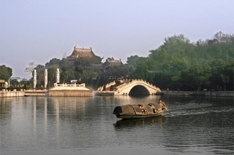 远处香炉峰,雨雾茫茫,缠绕山顶佛塔,若有若无,水畔大禹陵,钟声悠扬,回响耳边心田,忽远忽近。身处其中,更显山水的神秘恬静,感受着大自然的自在,心旷神怡,思绪翩翩。