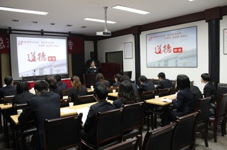 活动分自我反省、唱歌曲、学模范、诵经典、发善心、送吉祥、向“德”鞠躬和做善事等八个环节,以加强“四德”建设为重点,用“身边人讲身边事、身边人讲自己事、身边事教身边人”的形式,大力宣讲道德先进人物优秀事迹和崇高品质,使广大职工明确了开展此项活动的重要意义,进而提升员工的道德素养,营造“讲道德、做好人、树新风”的浓厚氛围。