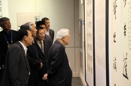 十一届全国人大常委会副委员长周铁农宣布第四届中国书法兰亭奖开幕。中国文联党组副书记、副主席覃志刚,省政协副主席陈加元,省文联党组书记田宇原,中国书法家协会主席张海,市领导钱建民、俞志宏、谭志桂、陈长兴、尹永杰、冯建荣等出席开幕式。中国书协分党组书记、驻会副主席赵长青主持开幕式。