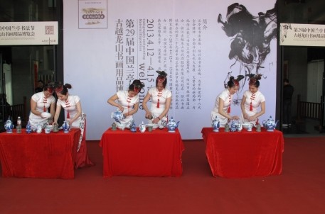 29届中国兰亭书法节书画用品博览会正在绍兴黄酒城广场展出,为活跃展会气氛,吸引广大客商,组委会组织了书画大师现场表演、酒道表演、文房四宝论坛等活动,吸引了众多游客和展商参与。