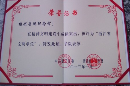 绍兴鲁迅纪念馆被评为“浙江省文明单位”