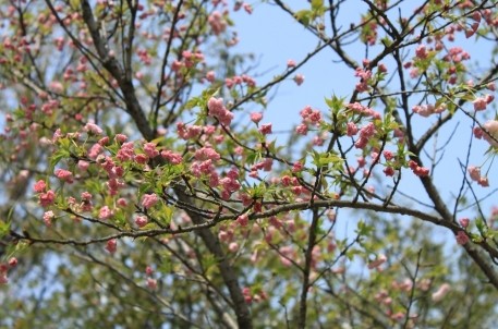 小编想告诉游客朋友们,早樱飘出的是浪漫,晚樱开出的是天然的画中画。一般游客都只认同早樱是樱花,而晚樱却被忽略掉,当早樱开过后,晚樱时节樱花林里面游客量就会大量减少,可许多人就这样错过了真正的美景。由于晚樱的盛开都已接近清明时节,雨水较多,雨后清新的空气中夹杂着淡淡的泥土味,站在林子的三叶草堆里面,眼前矮矮的晚樱朵朵绽放,远处放眼望去便是阳明大佛。蓝天做背景,青山绿地,点缀着红花,这才是晚樱的魅力所在,握起手中的相机,拍下便是画中画。