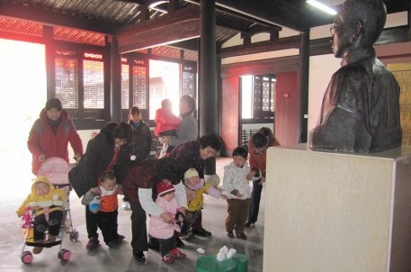2013年3月5日,是我国著名的教育家蔡元培先生逝世73周年的纪念日,蔡元培故居在这特殊的日子里热情接待了来自上海的游客和自发来到故居的周边居民。他们在先生塑像前献上自制的小白花,缅怀先生,表达对先生的思念之情。
