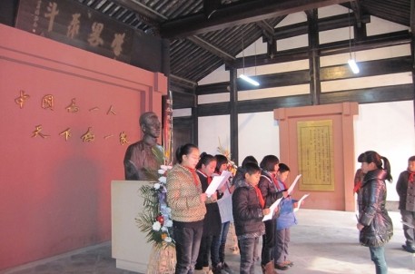 1月9日,在蔡元培先生诞辰145周年之际,绍兴市元培小学的20余名师生在蔡元培故居举行了“守望与追忆”小型诗歌吟诵会,大家用这种特殊的方式来缅怀先生、赞美先生。活动结束后,同学们还在景区讲解员的带领下参观蔡元培故居,更好地了解了绍兴名人文化和蔡先生的一生。(名人故居 陶洁)