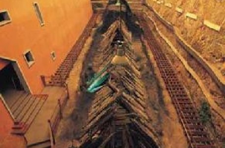 印山王陵就在兰亭对面的印山上。印山本身并不高,但绍兴多是些低矮的丘陵,越王陵建造在印山的山顶,向四周望去,倒也有一览众山小的壮丽。走进里面,低头便能看到陵墓,陵墓本身的造型十分的独特,如果不是其中一部分暴露了里面的三角形木结构支架的话,它本身就是一个纯黑的完美的梯形。你很难想象这会是一个陵墓,若不是有备而来,我想即使告诉我这是一个矿洞,我也会深信不疑。木炭和青胶泥与巨木构筑起来的框架很好的起到了防腐与防潮的作用,而包裹在墓室外的树皮和封土墩等“屏障”,也是使得这座震撼的独木巨棺在历时约两千五百年之后,依然能如此完整保留下来的重要原因。