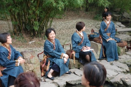 陈主席离开后,景区迎来了参加此次会议的四地妇联领导和近百位优秀妇女代表。随后,其中的42位地市级以上妇女代表相聚在曲水流觞景点,换上书道服,参加景区特为其准备的仿古雅集活动。整场流觞活动在浙江省妇联党组副书记、副主席劳红武女士的开场讲话中拉开帷幕。紧接着,四省妇联主席纷纷吟诗作词,诗词都紧扣本次“妇女发展与文化繁荣”这一主题。直到活动结束,大家都表示意犹未尽,希望下次有机会还要再来。