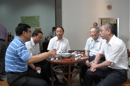 7.27日下午,全国政协委员,中组部原秘书长高世琦,在省政协副主席王永昌陪同下,到绍兴黄酒城参观考察。在讲解员的引领和讲解下,高世琦秘书长相继参观了酒史厅、酒艺厅、地下酒窖,并在黄酒体验吧欣赏酒道表演,品尝绍兴黄酒。