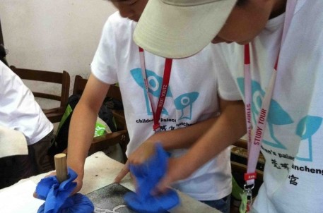 7月11日,来自广东东莞的200名小学生来到书法圣地兰亭参观,学习和体验拓碑工艺,感受中国传统文化的魅力。在书苑里报告厅,小朋友们分批参与,先是听工作人员介绍和演示拓碑的方法,然后两人一组,按“清洁、上纸、敲打、上墨、晾干”的五步程序,开始自己动手制作拓片。在工作人员的耐心指导下,小朋友们对拓碑表现出了浓厚兴趣,拓完后互相展示、比较各自的劳动成果,觉得不满意的纷纷要求再拓一张。最后,每位小朋友开心地将自己做的拓片放进书包,表示要带回家给父母看。
