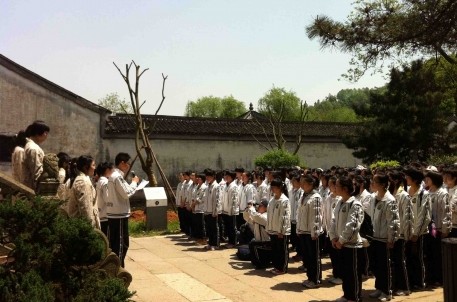 4月26日上午,上海位育中学专门组织高二年段的全体师生来兰亭景区开展社会实践活动,学习《兰亭集序》,感受书法魅力。御碑亭前,20位身着书童服的学生代表带领400余名同学集体朗诵《兰亭集序》,抒发感概,感悟人生。之后,全体师生体验仿古曲水流觞活动,感受1600多年前的流觞雅事。