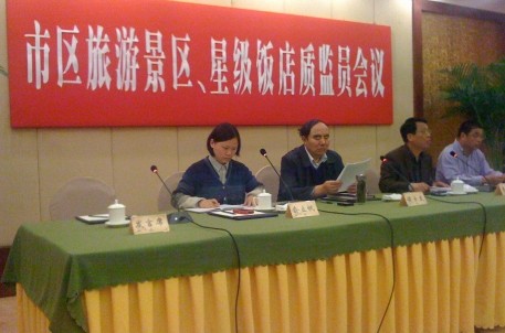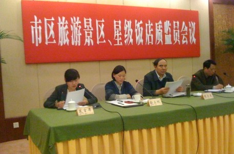 4月17日,由绍兴市旅游质监局组织的2011年度旅游景区、星级酒店质检员会议在绍兴饭店召开,东湖景区同集团公司其他兄弟景区及市区星级酒店各质检员一道出席了会议,并在会上以2011年度实现0投诉景区的身份进行了发言。